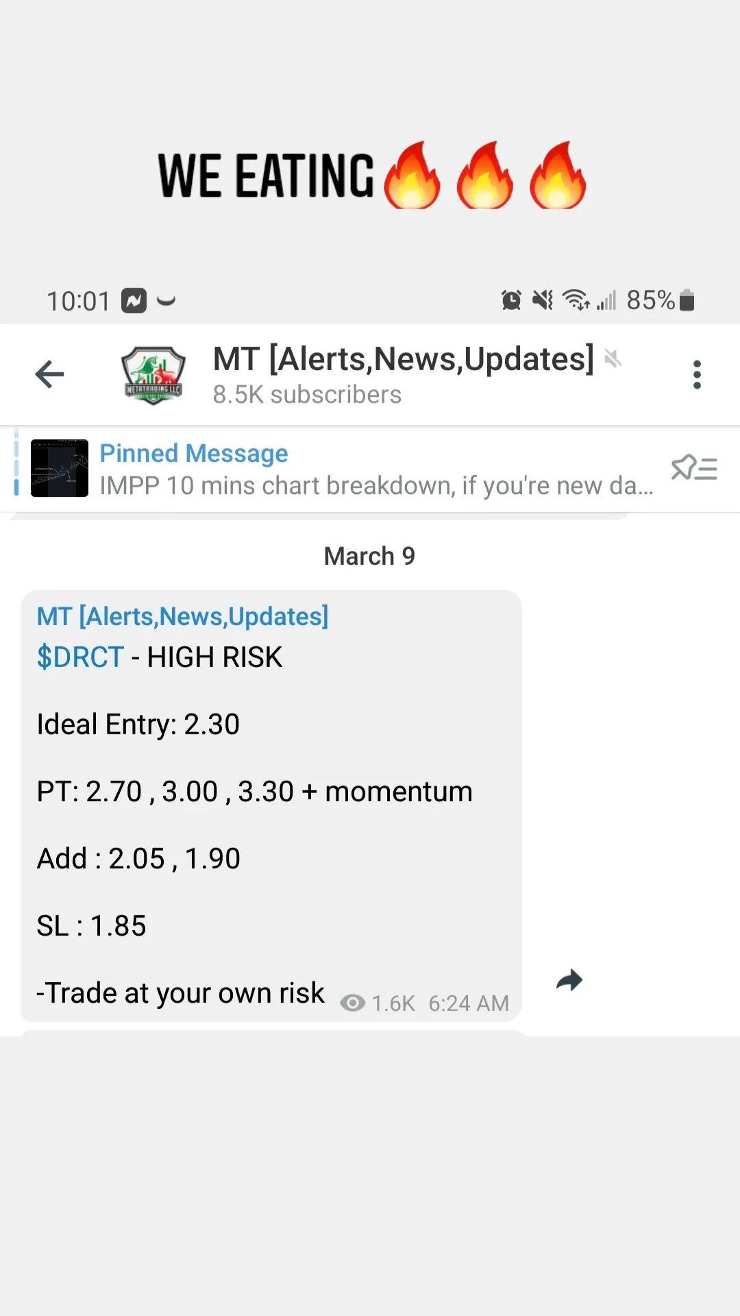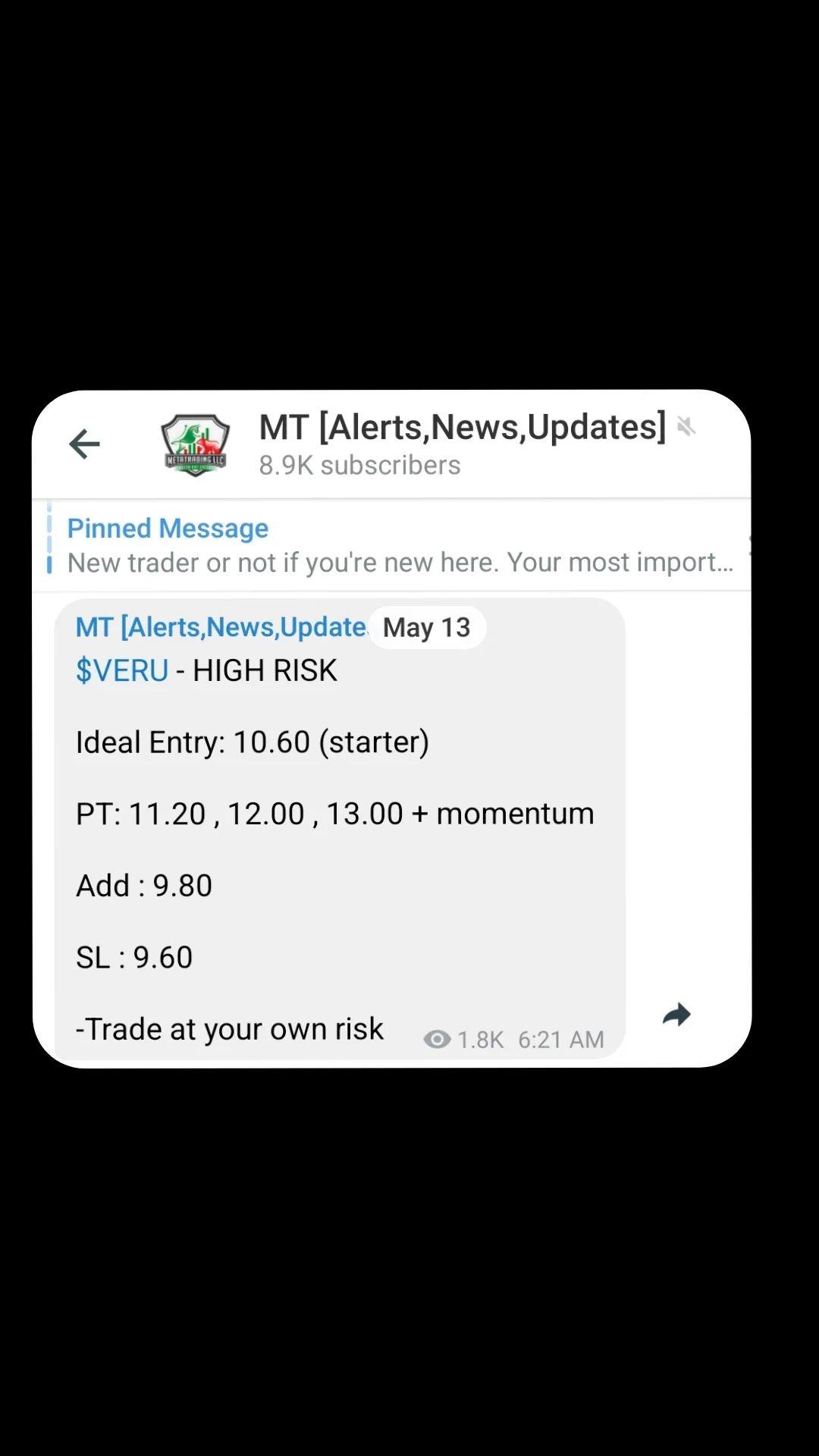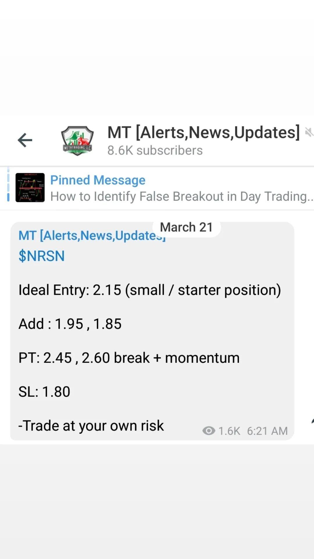 Welcome! This Subscription gives access to MetaTrading Private Stock Alerts Channel